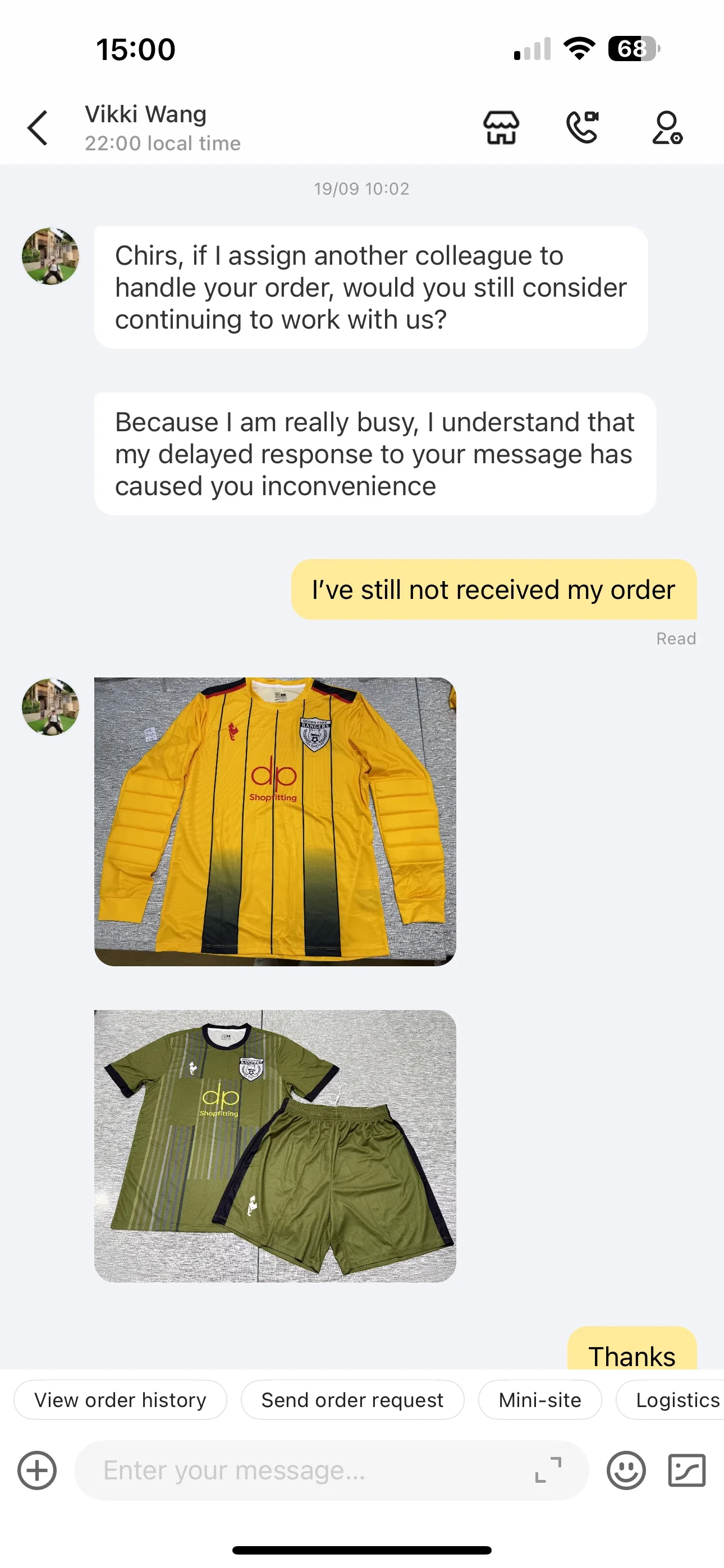I´m very HAppy with this Company. Great Products, Delivery time is good and they help if any problem. Nice Comunication. The Jerseys are very good with high Quality