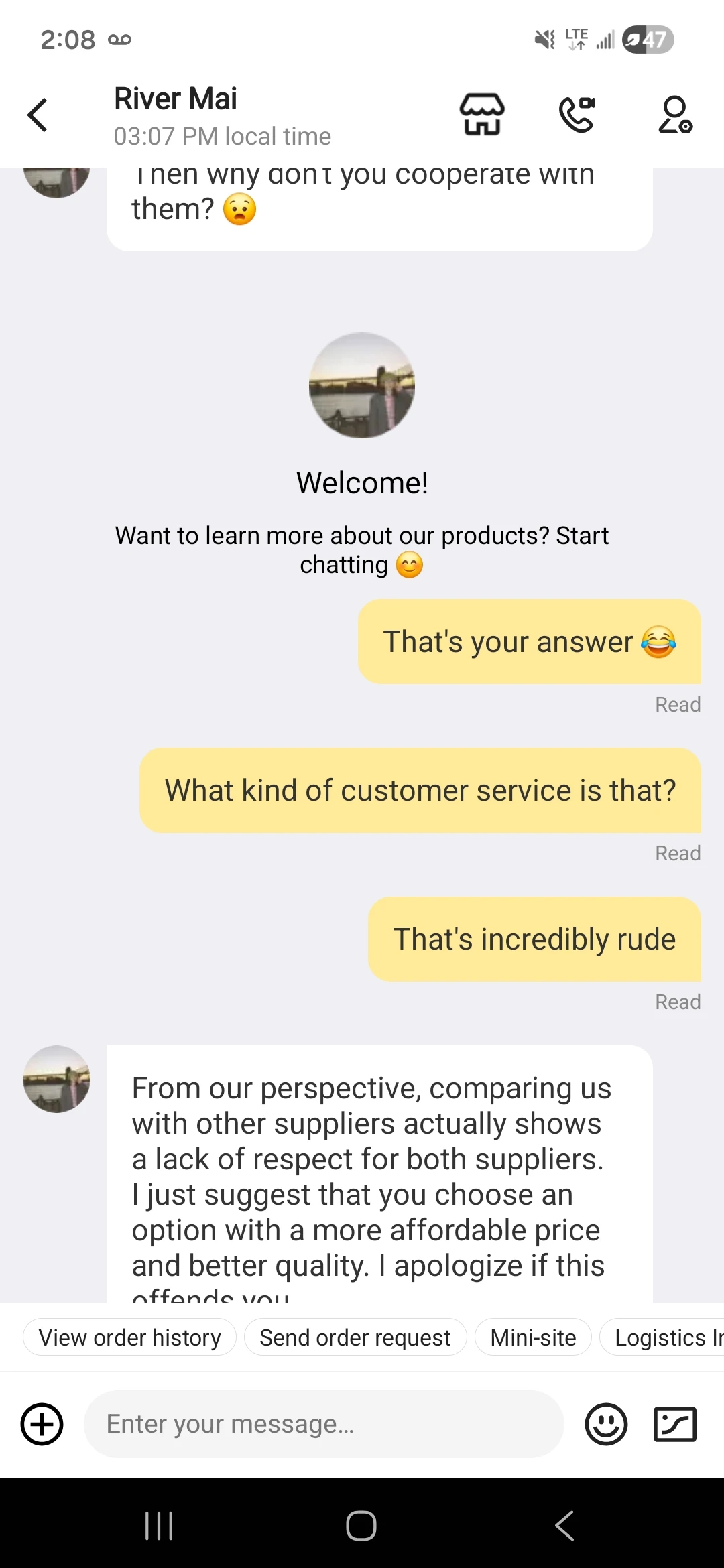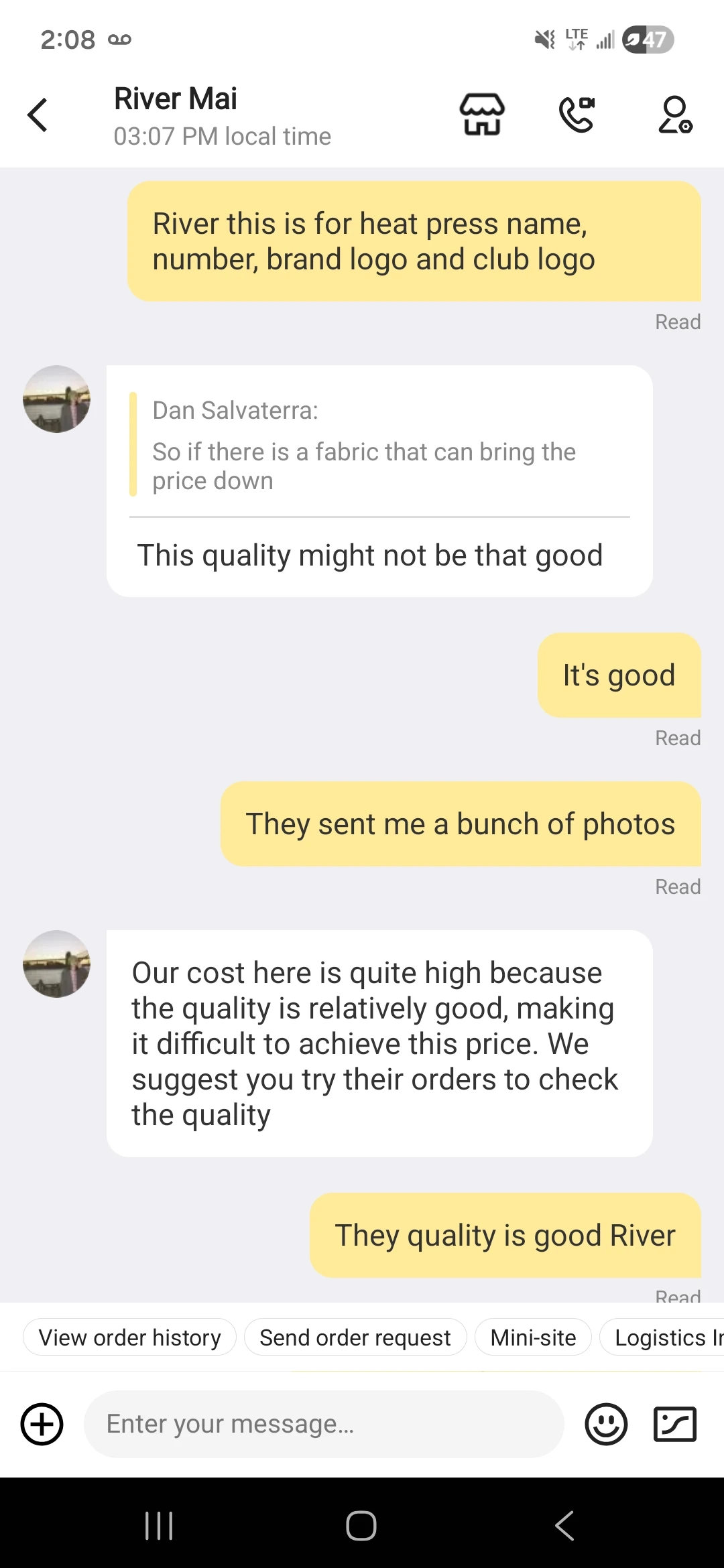 Quality is good, problem is with River the sales person. See photos